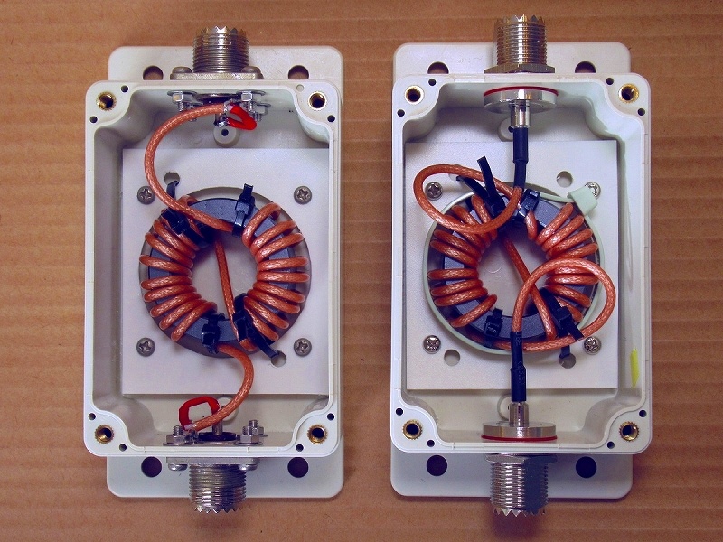 ・左は古いCMFのM型コネクターを再利用した1号機、右は圧着手タイプのUHFコネクターを使用した2号機になります。