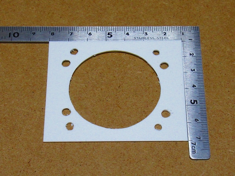 3.次に手元にあった「低発泡塩ビ板(1mm厚)」を使い、ダイソーの「コンパスカッター」を使い中央に穴を開けています。
