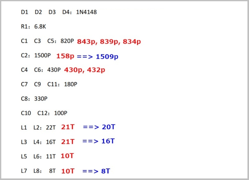 ・このバンドはレビューでコンデンサC2が誤実装されているとあるように、フィルターの体を保っていません。