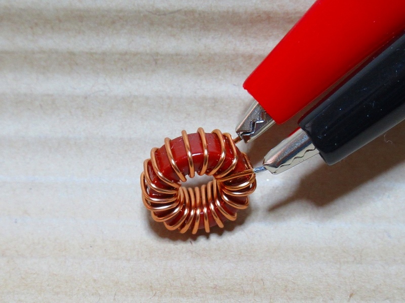 1.残ったコア(T-50-2)にホルマル線(0.65mm)で密巻と疎巻でそれぞれ20T巻いています。