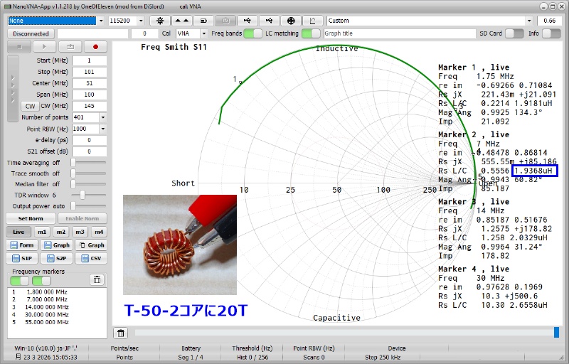2.測定操作はPC上のNanoVNA-Appを使用しています。