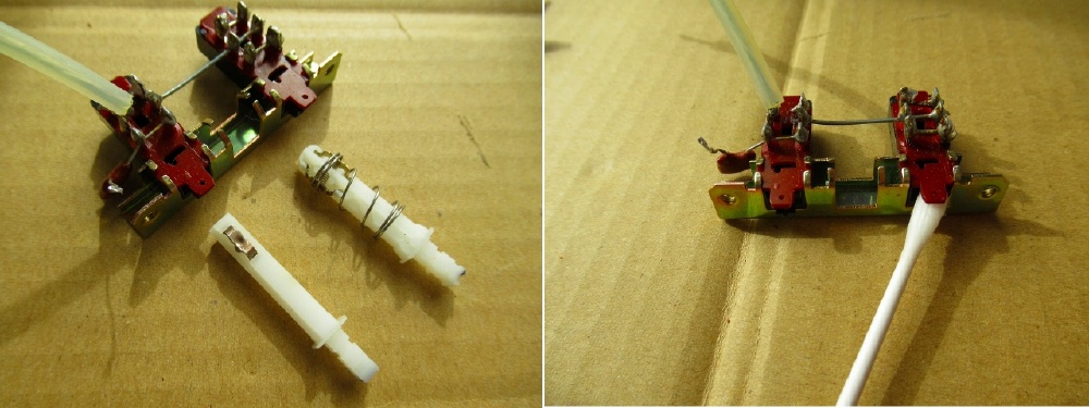1.白い可動接点部は、「バネをずらしてロックピンを外す」と此処でもブログのヒントが役立ちました。